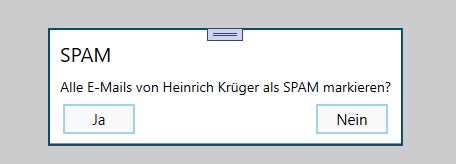 Markiert man eine E-Mail als SPAM, wird vorgeschlagen auch alle weiteren E-Mails von der selben Adresse als SPAM zu markieren. Diese Entscheidung wirkt sich auch auf zukünftige E-Mails aus.